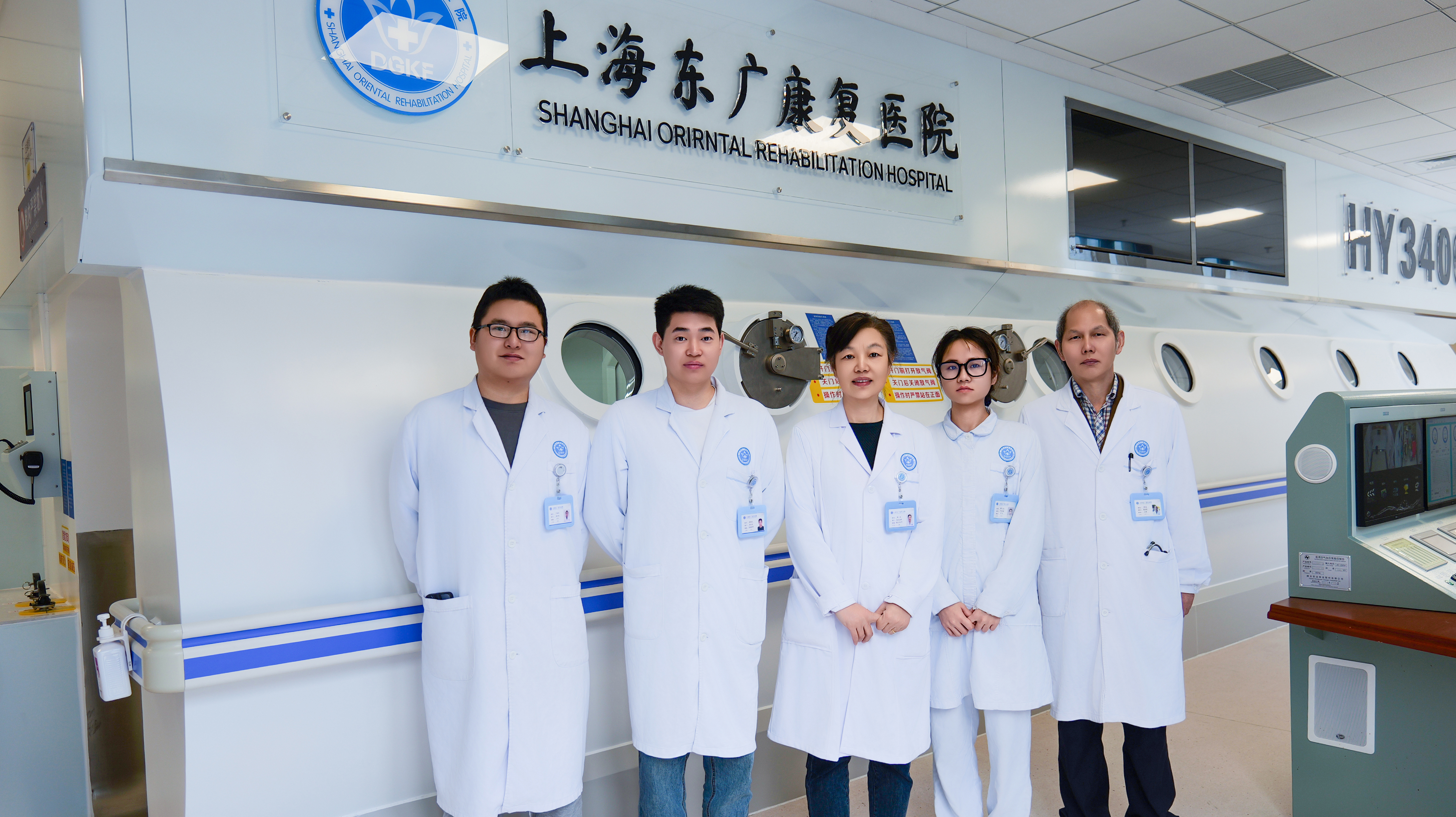 氧舱采用了先进的加宽型平移门,消除氧舱门槛,可充分满足各类高压氧适应症患者在氧舱治疗。氧舱采用先进的数字集成化操作控制系统,实现了电脑自动一体化控制,确保思者的安全及治疗的有效性。氧舱配备语音提示系统,确保操舱过程中,工作人员与舱内人员及时沟通。上海东广康复医院高压氧科,工作人员按照上海市高压氣舱质控管理与应用规范的要求配置,人人具备扎实的专科理论基础及技术操作技能,全员经过《上海市医用高压氧从业人员岗位培训班》培训考核。