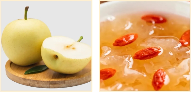 梨、银耳、百合、山药、白萝卜、莲藕等。这些食物大多含有丰富黏液质,能够有效滋润呼吸道和消化道。