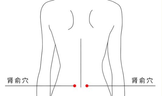取穴:由肚脐中作线环绕身体一周,该线与后正中线之交点即是命门穴,命门穴双侧各旁开2横指处,即是肾俞穴。
