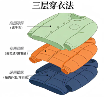 2、三层穿衣法”科学御寒:贴身选择透气吸湿的纯棉衣物,中层为保暖层,外层为防风防水层。这样的穿衣方式既能保持体温,又能在进入室内后方便调整,避免过热出汗后受凉。