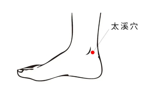 太溪穴,属足少阴肾经,气血精气在此穴汇聚以后,又以此为源,向上输布。 常按揉此穴有滋阴补肾的作用,可缓解口燥咽干、眼目干涩等症状。