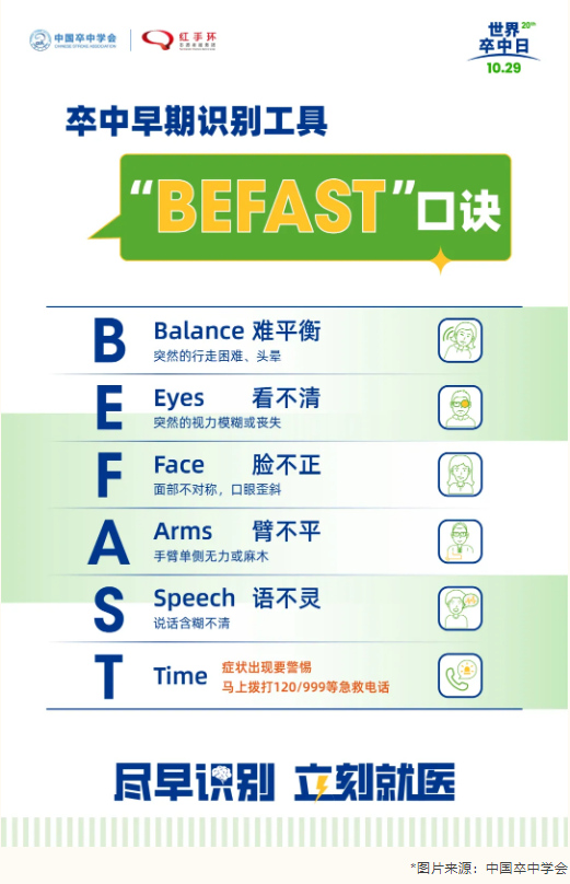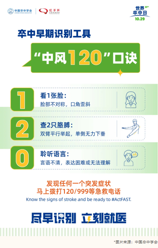 每年的10月29日是世界卒中日,今年的主题为“分秒必争,识别卒中,快速行动”,结合我国实际情况,中国卒中学会发布了2025年世界卒中日中文主题:“尽早识别,立刻就医”。