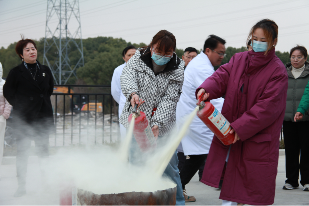 在灭火训练环节,在授课老师的详细讲解和示范下,参训人员至现场使用干粉灭火器进行模拟灭火实操,做到人人参与,人人过关,确保熟练正确使用灭火器。