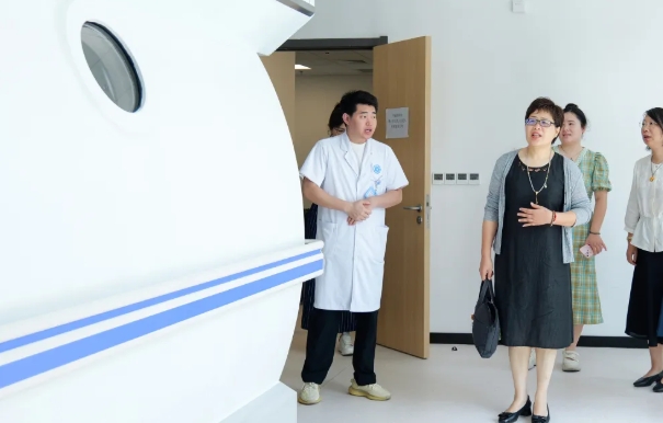在高压氧舱区域,祝会长详细询问了设备的运行情况、适应症范围以及患者的治疗感受,对医院引进先进设备服务患者的做法表示赞许。在影像科,她重点关注了检查流程的优化、影像诊断的质量控制以及与临床科室的协作效率;在住院病区,祝会长一行对病区营造的温馨、舒适、充满人文关怀的环境给予了肯定。在康复大厅,观摩了不同康复阶段患者所进行的个性化训练,了解康复评估流程、治疗方案制定和康复设备应用等。