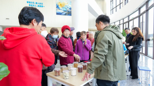 现场还邀请了中药材加工厂的员工,他们带来多种中药材供大家辨识,并有阿胶品尝,现场气氛热烈,反响良好。